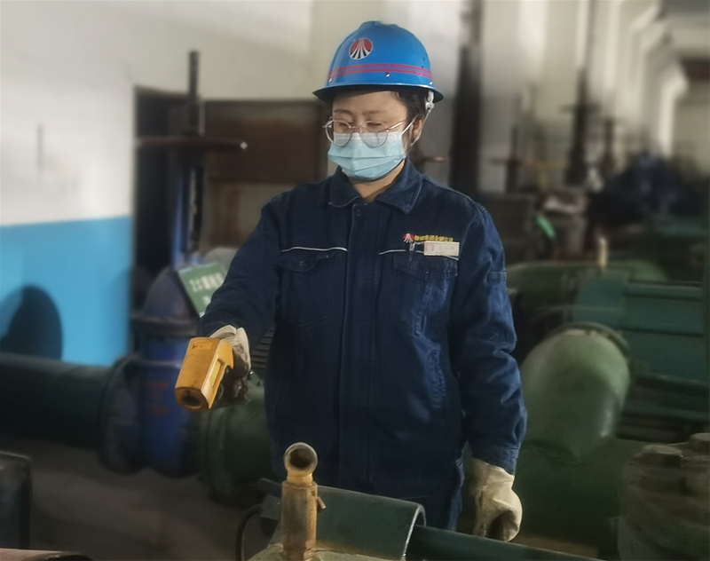 但還在崗位的她看不出有一點焦急,一臺一臺認真點檢設備,二冷泵、除塵泵、凈環泵、濁環泵……她別人勸她草草檢查完就可以回去了,但她堅持要把每臺水泵都檢查一遍,用自己的細心和耐心維護著水泵的正常運行。