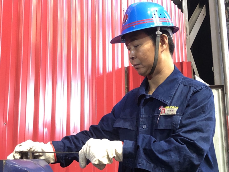 圖三:煉鋼廠連二作業區安全員張保銀正在檢查煤氣設備,現場的溫度持續攀升,汗珠順著他的臉頰滾落,但是他始終牢記自己的職責與使命,不放過任何一個細節,用實 際行動踐行著自己的安全誓言。