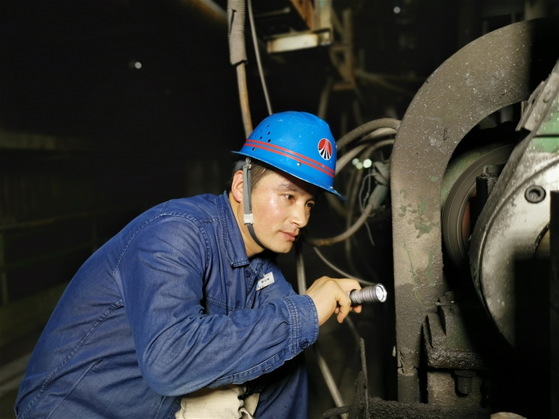 圖十:煉鋼廠連二作業區安檢員郭云峰正在對連鑄振動系統進行點檢。大負荷照明燈的強光打在他的臉龐上,他一個點一個點地仔細檢查著,一顆顆滾落的汗珠里,包裹的都是他對設備的精心。