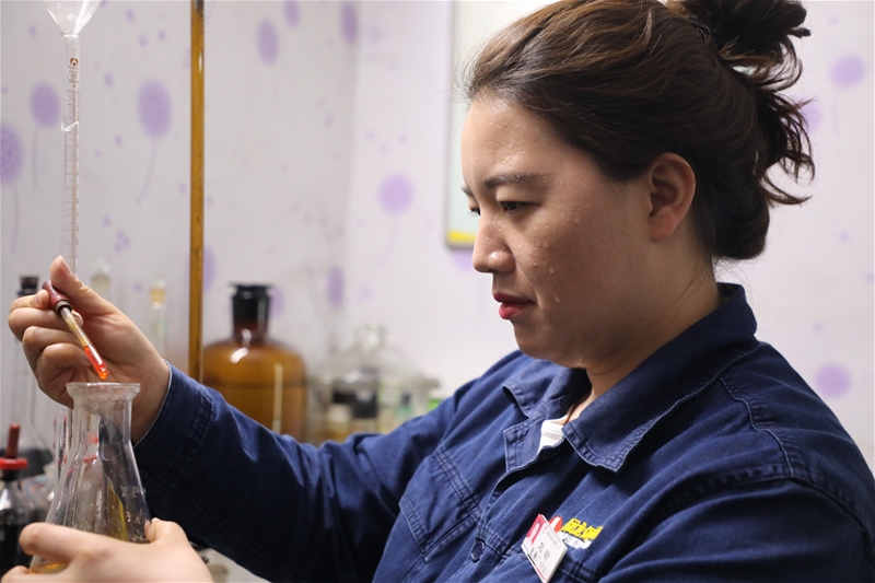 在運行化驗室,剛?cè)踊貋淼幕灩⑴晤櫜簧喜潦妙^上的汗水,立即投入水質(zhì)化驗中。“確保水質(zhì)達標(biāo),優(yōu)質(zhì)水質(zhì)上線使用,為鋼材性能提升提供有力保障。”是她履行崗位的諾言。