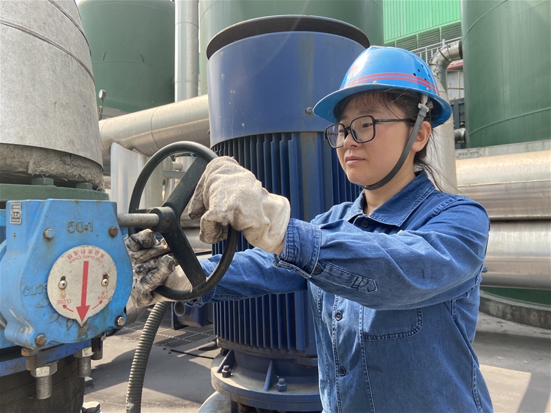 驕陽如火般綻放,水泵工王兵開啟棒二濁環(huán)增壓泵進口閥門,她白皙的臉龐被曬得通紅,即便如此,她仍然以女工特有的耐心與堅韌,守護著水系統(tǒng)的平穩(wěn)順行。
