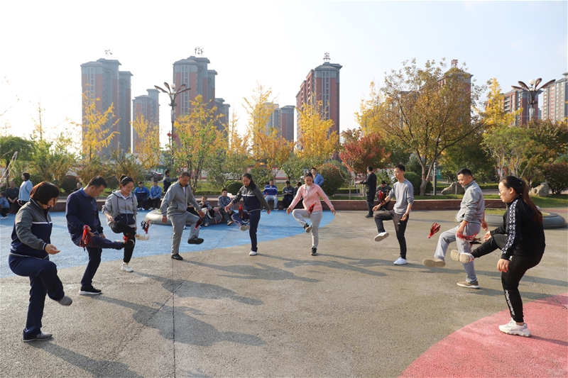 活動包括健步走、跳繩、羽毛球、踢毽子、三人折返跑等體育項目以及象棋、五子棋、跳棋等益智項目,參賽隊員共分7組進行友誼比賽。活動現場氣氛熱烈,笑聲與汗水一同揮灑,激情與活力一起迸發,加油聲、數數聲交織在一起,此起彼伏,現場一片歡樂向上的景象。