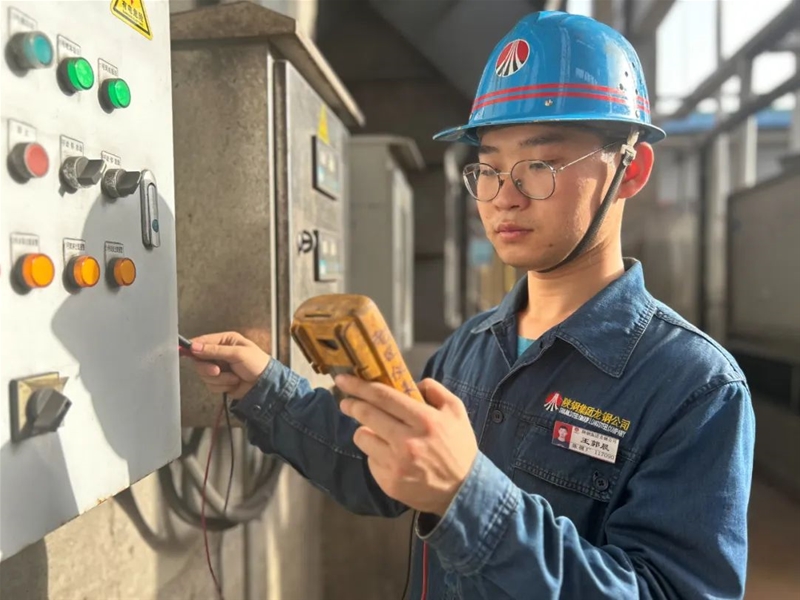 走進老區上料除塵倉房頂,他停下腳步側耳聽,“有蒸汽的聲音,好像哪里漏氣了。”只見他小心翼翼地走進上料倉內,不一會兒,就找到了漏點。檢查發現是脈沖閥膜片損壞,噴吹壓力過大造成氣體泄漏。他立刻聯系相關人員到現場,一邊和運行人員溝通開票,一邊準備工器具及配件,確認安全措施后,進行現場安全交底和風險辨識分析,協助鉗工以最快的速度更換好減壓閥。