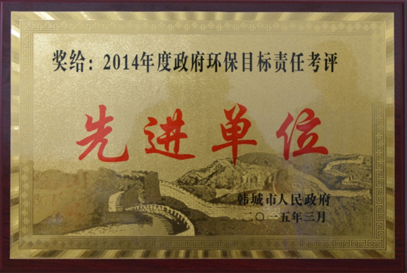 公司榮獲“韓城市2014年度環(huán)保目標(biāo)責(zé)任考評(píng)先進(jìn)單位”榮譽(yù)稱(chēng)號(hào)