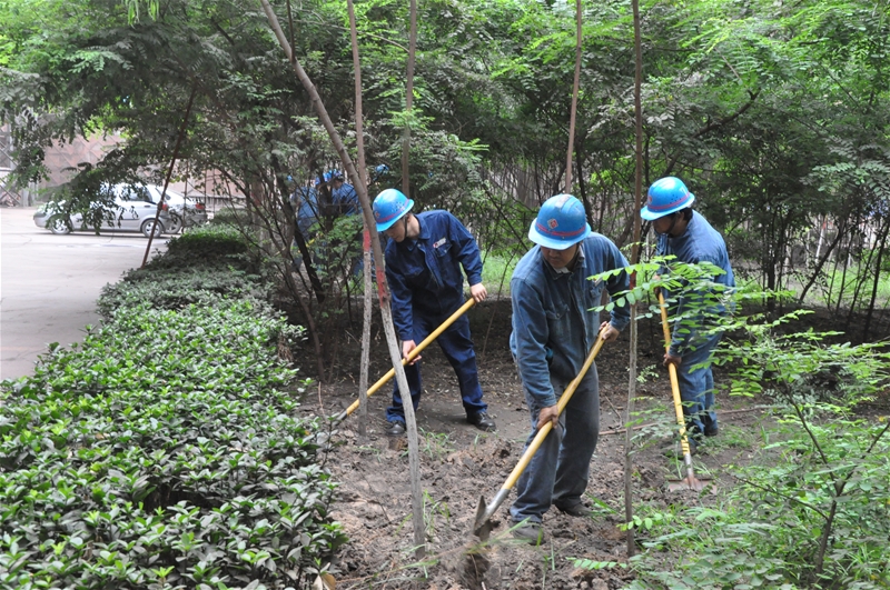 大膽成立綠化管護(hù)隊(duì),專職管護(hù)綠植。針對(duì)該廠綠化面積廣的現(xiàn)狀,大膽創(chuàng)新,成立僅有7人的綠化管護(hù)隊(duì),對(duì)廠區(qū)綠化帶雜物每天分時(shí)間段撿拾兩次并保潔,對(duì)廠區(qū)主干道綠化帶澆灌并沖洗葉面一次,每周對(duì)外圍綠化帶進(jìn)行深翻、澆灌兩次;每季度對(duì)冬青、樹(shù)木進(jìn)行修剪,同時(shí)做好適時(shí)、適度追肥工作。七人的工作可謂艱巨啊!