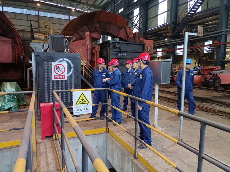 在煉鋼廠,邢宏昌詳細了解了鐵水銜接、廢鋼配加、環保設備同步運行率、混鐵爐、轉爐生產運行等情況,并就老區轉爐與連鑄機生產組織切換與鐵水供應關系進行了了解。他要求,煉鋼廠要切實加強上下道工序信息溝通,根據高爐小時出鐵量實際,靈活切換爐、機模式,在保證生產穩定的前提下,確保低成本運行。