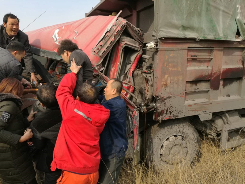 2017年11月的一天,他和同事出差前往山西省河津市對高鈣灰進行市場調研。返回途中,他發現兩輛車因交通事故導致司機被擠壓在駕駛室內,一人已經昏迷,另一人雙腿無法動彈,頭部正在流血。他當機立斷,喊了一嗓子“停車,趕快幫忙救人!”