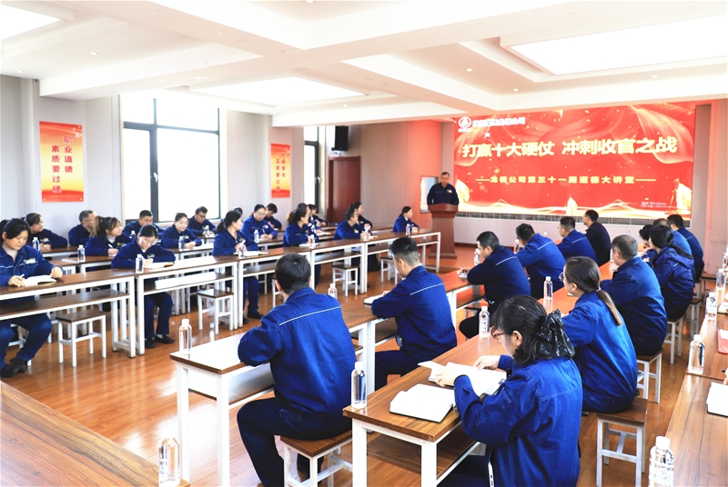 在“大干50天 決勝總目標(biāo)”的關(guān)鍵時期,舉辦此次道德大講堂旨在凝聚全員力量,激發(fā)全員斗志,激勵全體干部職工以破竹之勢向全年目標(biāo)任務(wù)發(fā)起總攻,為打好收官戰(zhàn)作出積極貢獻(xiàn)。