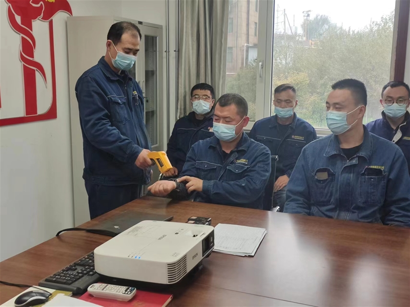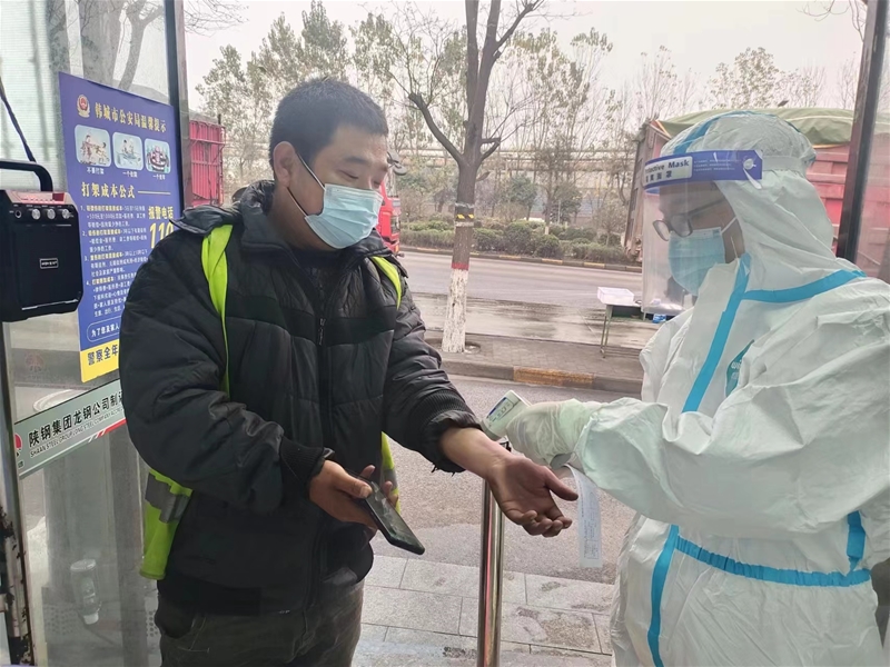 筆者上夜班見到他時,他依舊笑臉相迎不厭其煩地在測溫,查驗健康碼和核酸檢測結果。有人質疑他“不嫌麻煩”,他幽默風趣地笑著解釋:“疫情多變,無癥狀感染者人數居多,咱們千萬不能掉以輕心,這樣做不麻煩,而是為了大家都能安心在廠、安全在崗。”說完,他繼續負責測溫、查碼,并不知疲倦地巡查北門初檢和自動采樣站揭篷布兩個重點崗位。