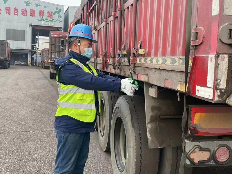 受疫情影響,公司近段時間對外來汽運車輛采取不同措施,落實“外防輸入”,最大限度保供生產用料。少了面對面的接觸,但服務不能打折扣、降標準。北門初檢組長曹志永正在提醒進入初檢大廳的辦票人員:“您好,請排隊間隔一米登記,測量體溫,出示行程碼、健康碼、24小時核酸報告。”雖然廣播的語音在播放,但他依然穿著防護服耐心地對司機進行溫馨提示。面對管控封條的車,他不怕辛苦和危險,緊跟著兩個工作人員不時遞水和面包,檢查車輛外觀封簽和水箱情況,跑前跑后替司機辦理進廠票據和卡,然后囑咐司機全程不下車,佩戴好口罩,保護好自己。
