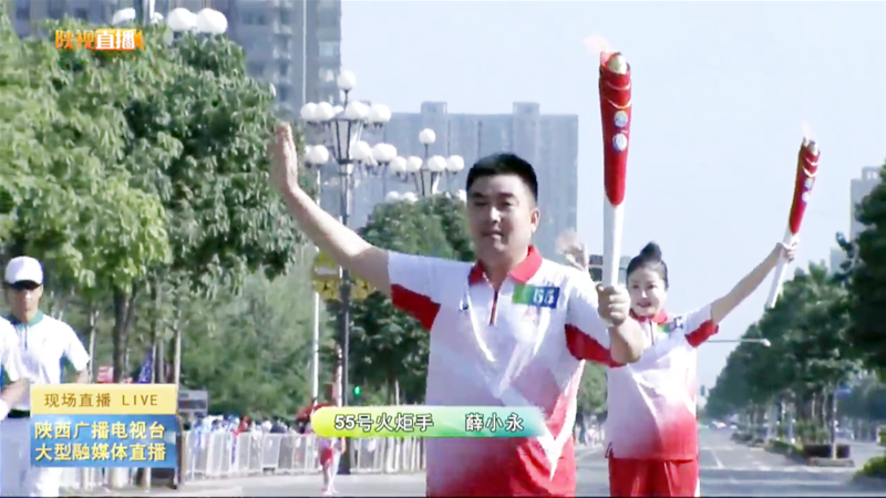 陜鋼集團形象代言人、陜鋼集團工會副主席、龍鋼公司煉鋼廠主任技師薛小永作為韓城站第55號火炬手,在韓城市礦馨園小區(qū)東南側(cè)與復興路十字北路段進行了火炬?zhèn)鬟f。