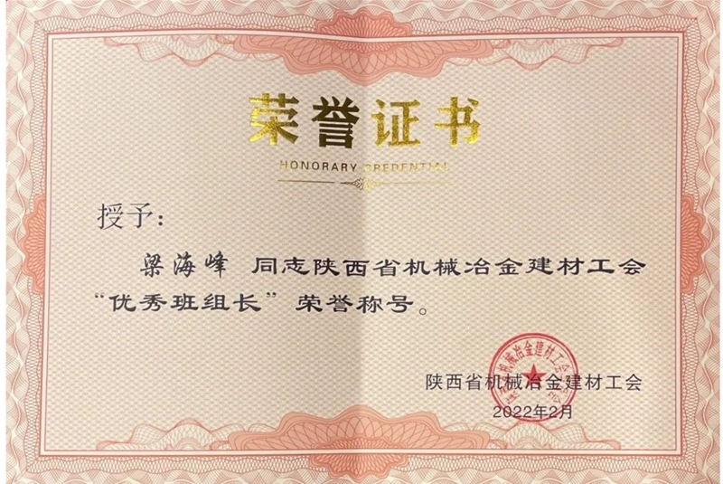 煉鋼廠連鑄維修電工班榮獲陜西省機械冶金建材系統“先進班組”,班組長梁海峰榮獲“優秀班組長”