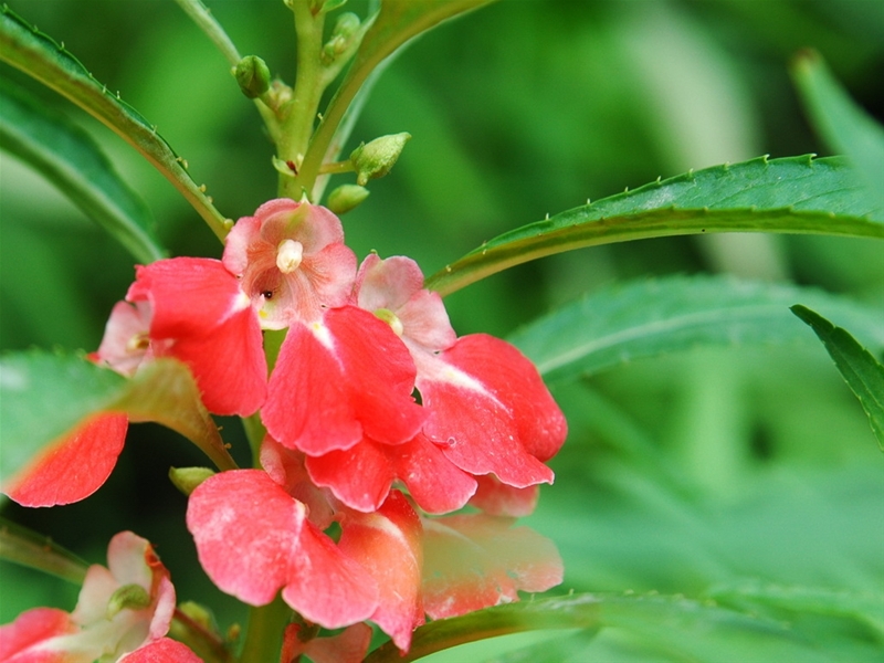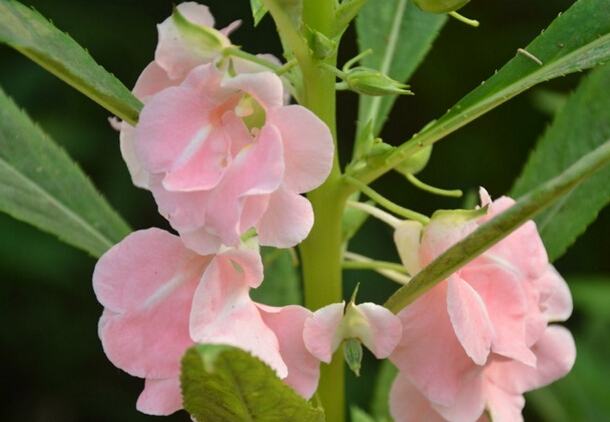 鳳仙花,實際上就是我們常叫的指甲花、染指甲花、小桃紅,因其花的頭足尾翅翹起來的樣子如鳳狀,因此稱為鳳仙花。鳳仙花的種類繁多,有大紅、粉色、粉紫色、白色等。這種花的種子生命力極其頑強,種子遇到外力就會破裂開,漏出像小米粒大小一樣的種子。因此,鳳仙花的花語中有“別碰我”之意。然而,鳳仙花的花期比較長久,一般會從六月一直開到深秋。查閱一番資料得知它的作用也極其廣泛,除了用于風(fēng)景花觀賞,采上幾朵也可以當(dāng)做花茶泡水喝,可以治療女性的腹痛,搗爛敷在指甲上可以治療灰指甲,而指甲花的根曬干后碾成粉末狀與水沖服,可以治療跌倒損傷。