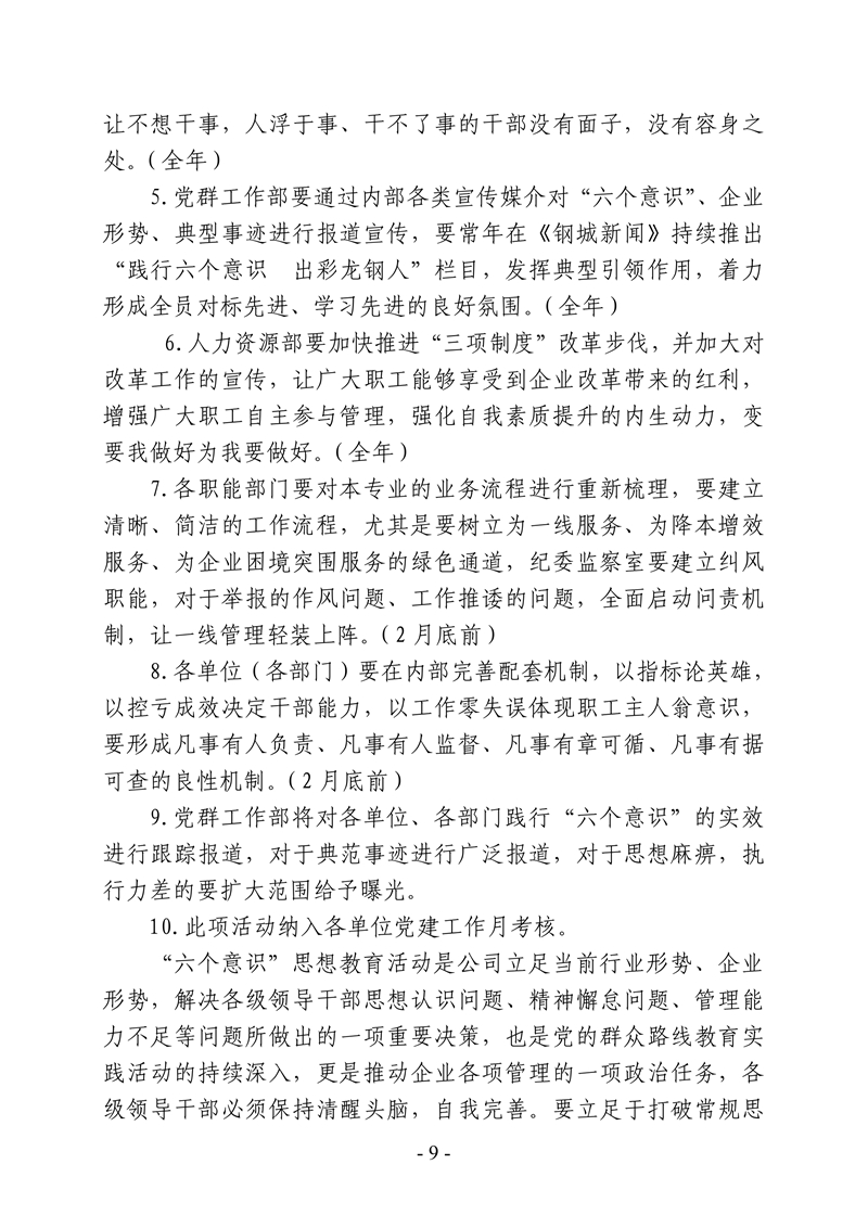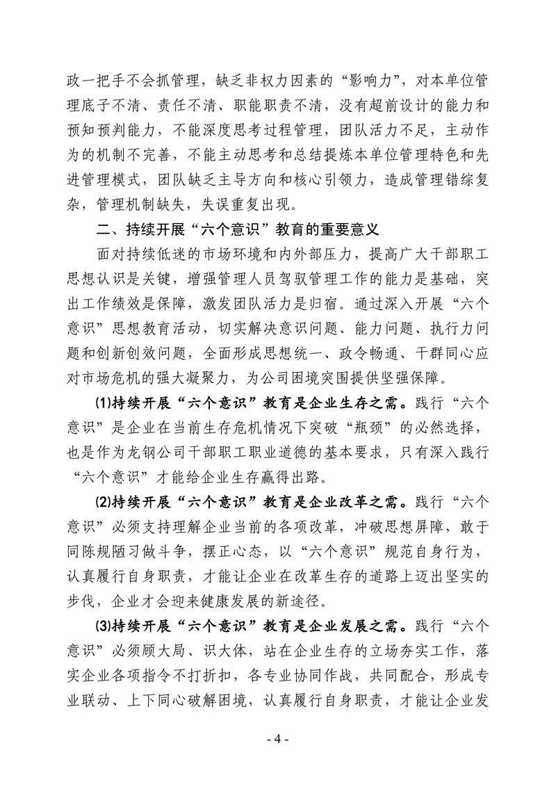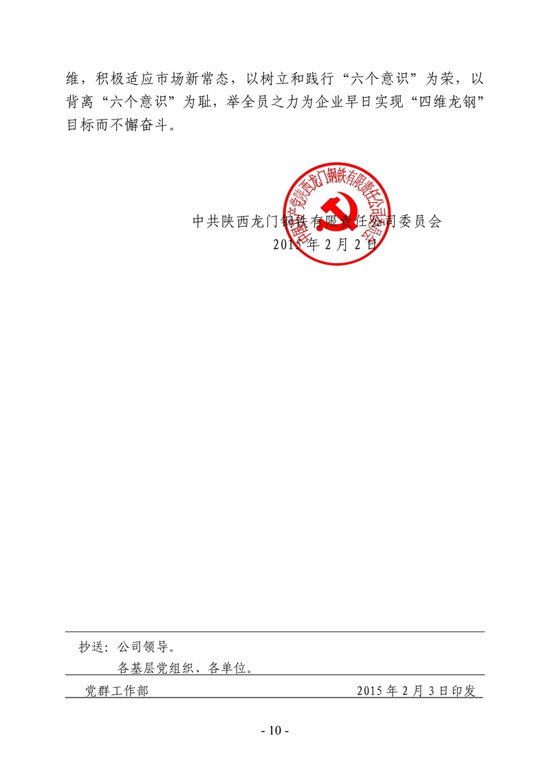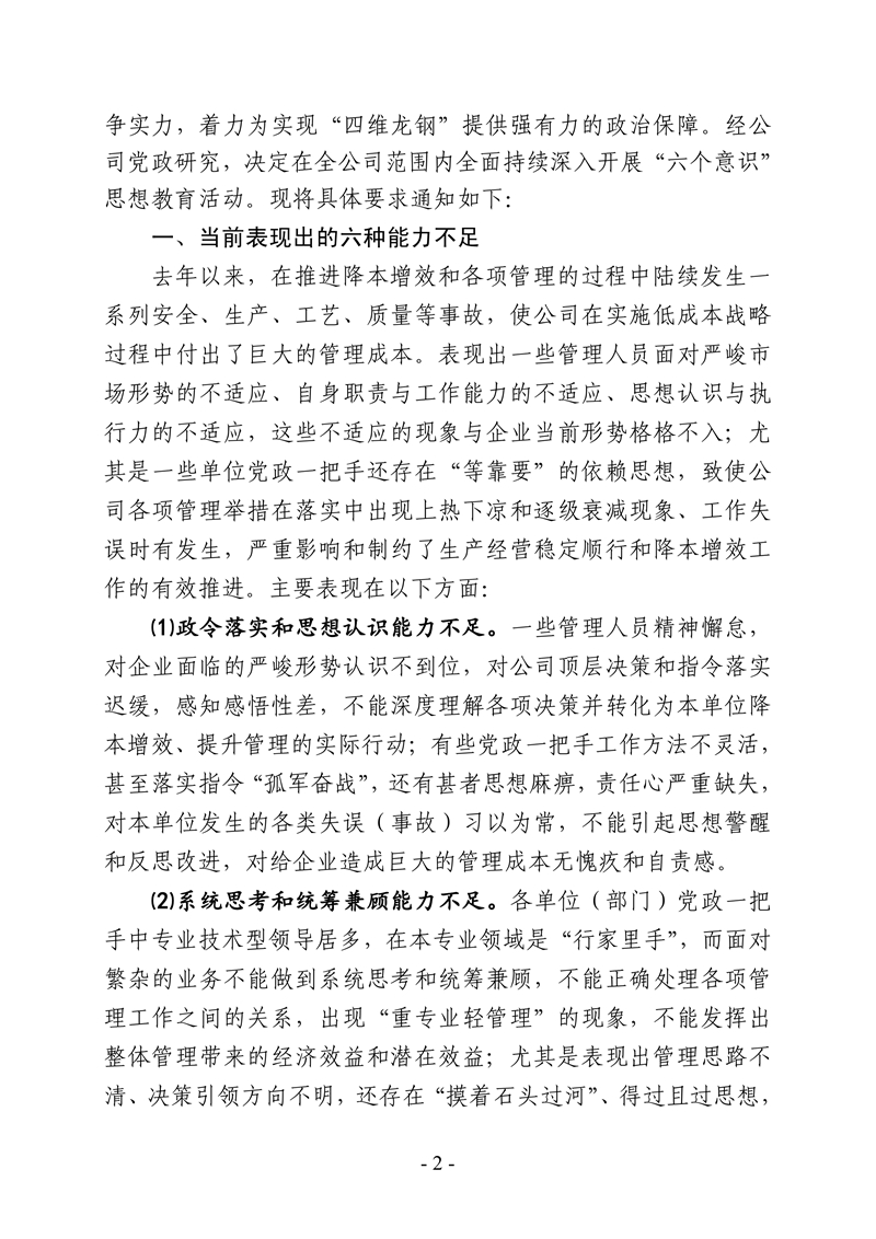 中共陜西龍門鋼鐵有限責任公司委員會 關于深入開展“六個意識”思想教育活動的通知