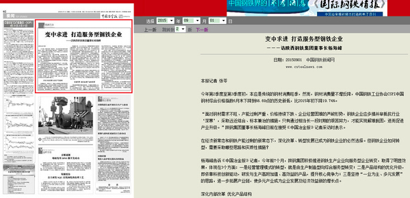 楊海峰介紹,2015年初以來,陜鋼集團鋼材價格持續下跌等困難,成立專門的改革領導小組,出臺《全面深化改革決定》,啟動了以資金、營銷、物流、大宗原燃料采購4個統籌統管和三項制度等為核心的16項改革工作,同時,堅持低成本戰略,抓降本增效措施的落實。為此,確立轉型發展思路是:治理管控現代化、經營管理集團化、主業轉型服務化、產業相關多元化。鋼鐵主業轉型發展戰略,是以企業戰略目標為統領,積極推進產品、制造、營銷、供應、融資五大戰略與戰略合作。其中,根據市場需要,陜鋼積極打造集建筑鋼材、帶鋼、鋼結構產品、石油管線鋼、機械加工用鋼為一體的綜合性、高端鋼鐵材料的“一站式”定制供應服務平臺,實現產品結構的優化升級,主要產品確定為建筑用鋼材60%、帶鋼10%~15%、鋼結構用鋼10%~20%、石油管線及機械加工件用鋼5%~20%。目前,陜鋼集團正在全力以赴抓各項改革和扭虧控虧措施的落實工作,確保實現全年500億元營業收入和控虧扭虧等目標。