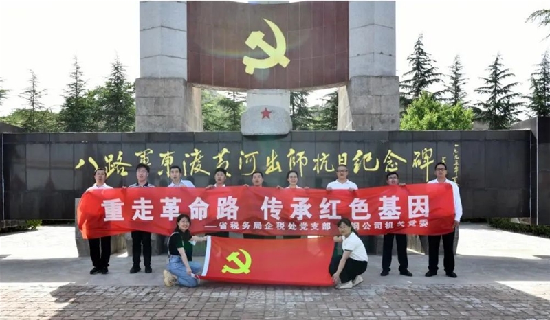 上好必修課 該單位黨委利用辦公樓LED屏、海報、電視、廣播、微信公眾號等載體廣泛宣傳,營造濃厚的學習氛圍。先后邀請韓城市委黨校張孝榮教授、公司副總會計師李艷芳作了黨史專題授課,開展了合唱入黨誓詞歌《我宣誓》、觀看《古田軍號》《第一大案》等重大黨史題材電影、“黨的知識”百日千題有獎競答等活動。并與陜西省稅務局企業所得稅處黨支部到八路軍東渡黃河出師抗日紀念碑攜手開展“支部聯建學黨史 稅收惠企辦實事”主題黨日活動,聆聽八路軍東渡黃河出師抗日的英雄事跡,緬懷革命先輩的豐功偉績,重溫入黨誓詞,教育引導黨員干部賡續紅色精神,踐行“干事”文化,齊心協力打造百年老店。